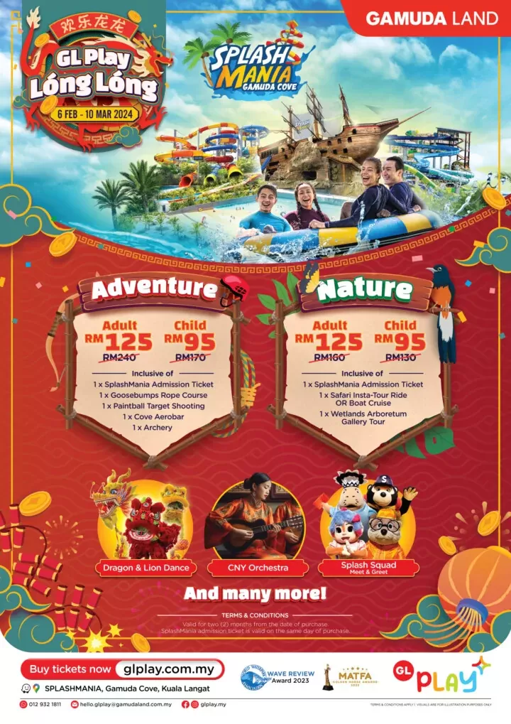 GL Play’s, Play Lóng Lóng campaign is your gateway to fun with the fam and friends this 6 February to 10 March. The promotional period offers great deals and exciting CNY-themed activities at GL Play’s attractions around Gamuda Cove, including the SplashMania Waterpark.