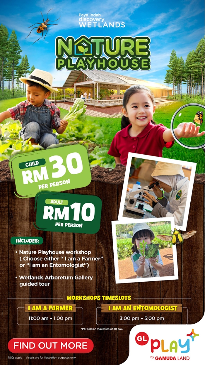 Give your child the gift of a truly unique experience at Paya Indah Discovery Wetlands @ Gamuda Cove!Kids can choose their own adventure – become a "Farmer" or an "Entomologist" for the day with hands-on workshops, exciting activities, and a guided tour of the Wetlands Arboretum Gallery. Let their imagination run wild as they learn about plants, animals, and the fascinating world of insects.