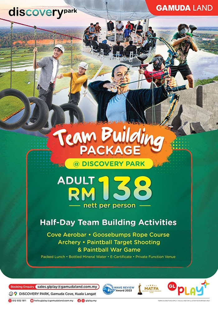 Unleash the team spirit with our all-new Team Building Package at Discovery Park, Gamuda Cove! Dive into thrilling activities like Cove Aerobar, Goosebumps Rope Course, Archery, Paintball Target Shooting & Paintball War Game.